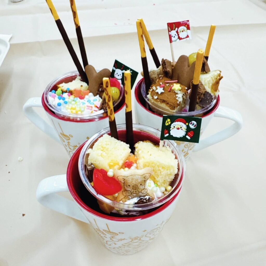 🎁 恒例のビンゴゲームでは、ノートやペンケース、お菓子など景品がずらり。「どれにしようかな」と選ぶ姿がかわいらしく、会場は笑顔でいっぱいに。さらにご寄付いただいた東京クリスマスマーケットのマグカップもペアでプレゼントされました!
