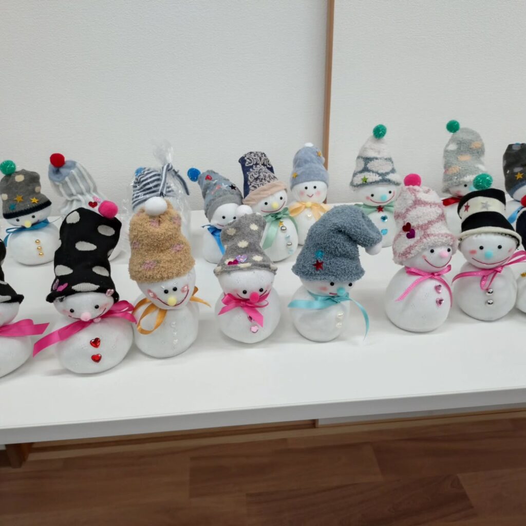 午後からの創作の時間は、ソックスを使った雪だるま作り。頭と体のバランスを工夫しながら、表情や飾りに個性が光る世界に1つだけの雪だるまが出来ました。