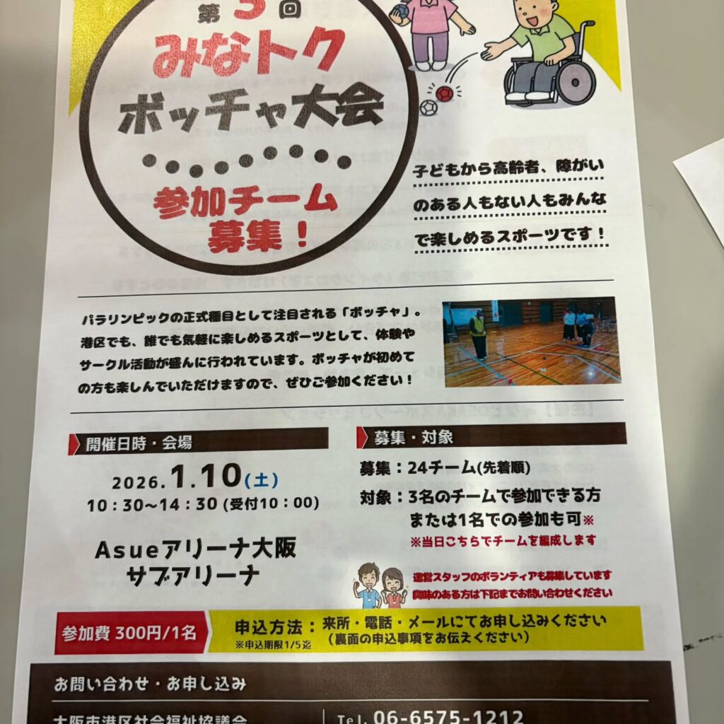 Asueアリーナ大阪で行われた「ボッチャ大会」に地域代表として1チームが挑戦。慣れない会場の床材や普段の練習とは違うボールの感触に戸惑いながらも、みんなで力を合わせて善戦。決勝リーグには届かなかったのですが、最後までチームワークいっぱいにプレー出来て大満足。笑顔あふれる楽しい時間でした。また次の挑戦に向けて、コツコツ頑張りま〜す❤️🔥